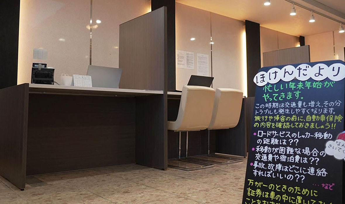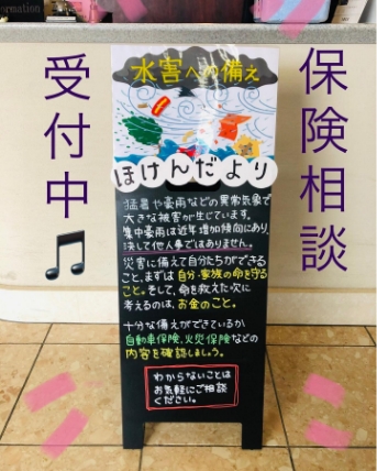店内受付やSNSで「自動車保険」関連情報を発信中!